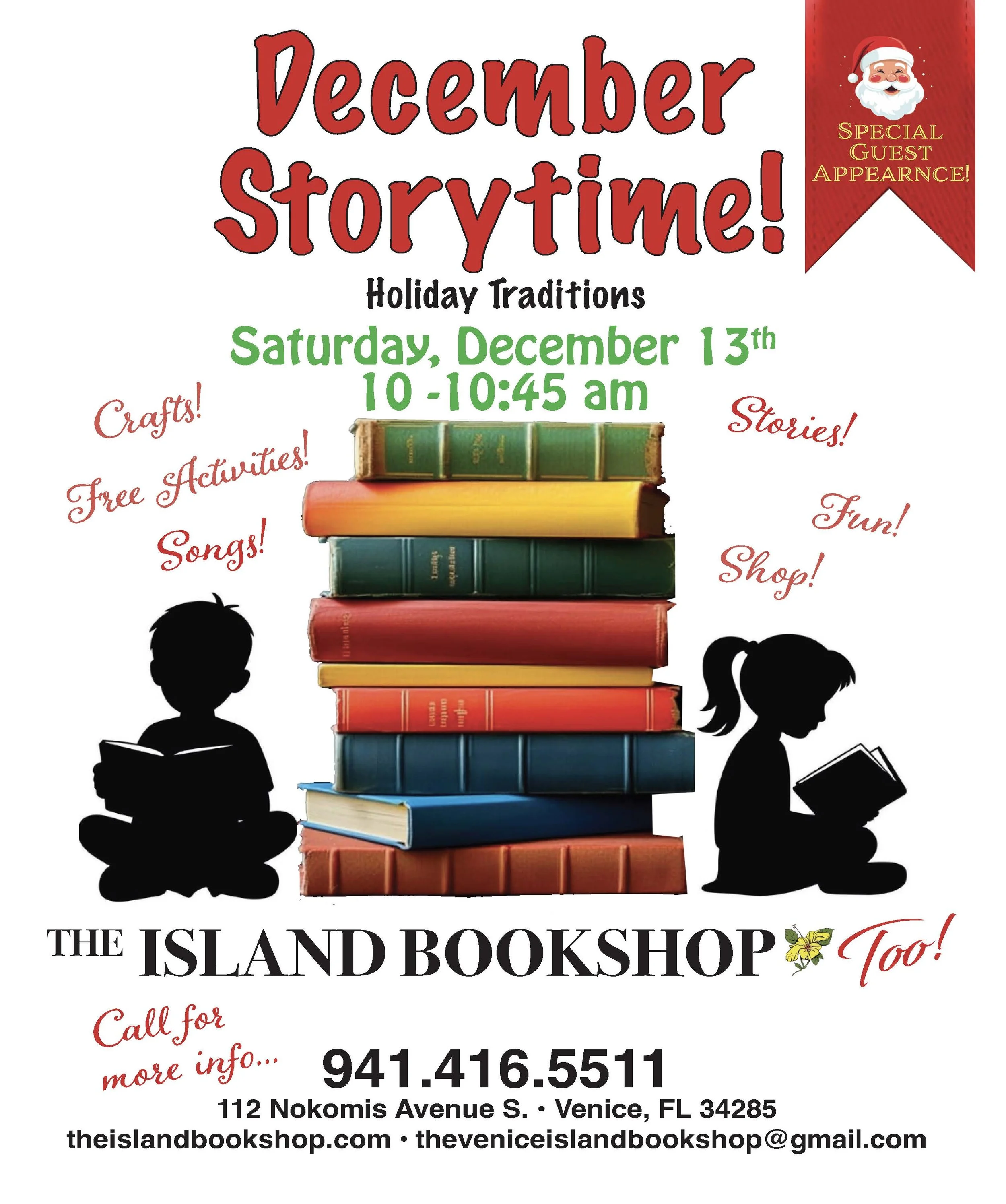 Back to All Events December Storytime Saturday, December 13, 2025 10:00 AM 10:45 AM The Island Bookshop 206 Miami Avenue West Venice, FL, 34285 United States (map) Google Calendar ICS